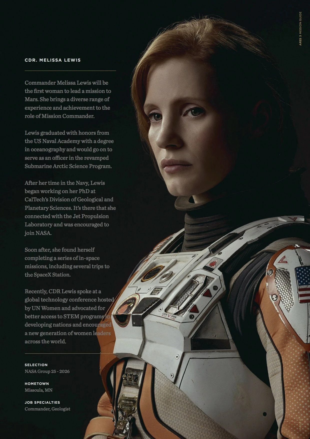She was picked to lead the Ares III manned mission to Mars at some point in 2026.